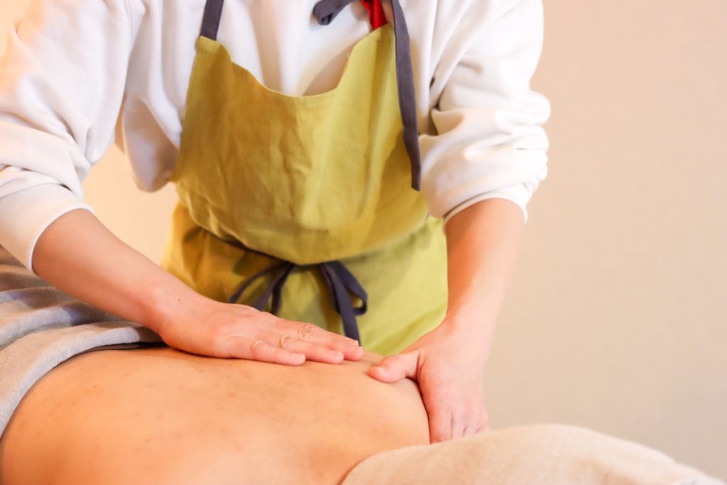 上半身(背中、腰、腕、お腹、デコルテ)のアロママッサージを行います。